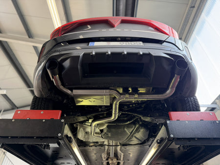 Wir entwickeln unsere Abgasanlagen auf unserem hauseigenen Allrad-Leistungsprüfstand, als Teil eines Performance Paketes. Die Anlagen können in der Regel durch eine Downpipe mit höherem Durchsatz / Thermo-Isolierung und ein geändertes Intake zum Performance Paket ergänzt werden. Abgerundet wird dies durch eine anpasste Programmierung / Abstimmung auf dem Prüfstand. Die Downpipes / Abgasanlagen entwickeln wir nicht als einzelne Bauteile sondern so, dass die gesetzlichen Vorgaben auch im Verbund mit Downpipe / Intake / Leistungssteigerung eingehalten werden und somit eine Eintragung aller Bauteile im Verbund möglich ist. Dafür werden die Systeme ausgiebig auf dem Prüfstand getestet und dem TÜV und im Abgaslabor getestet.